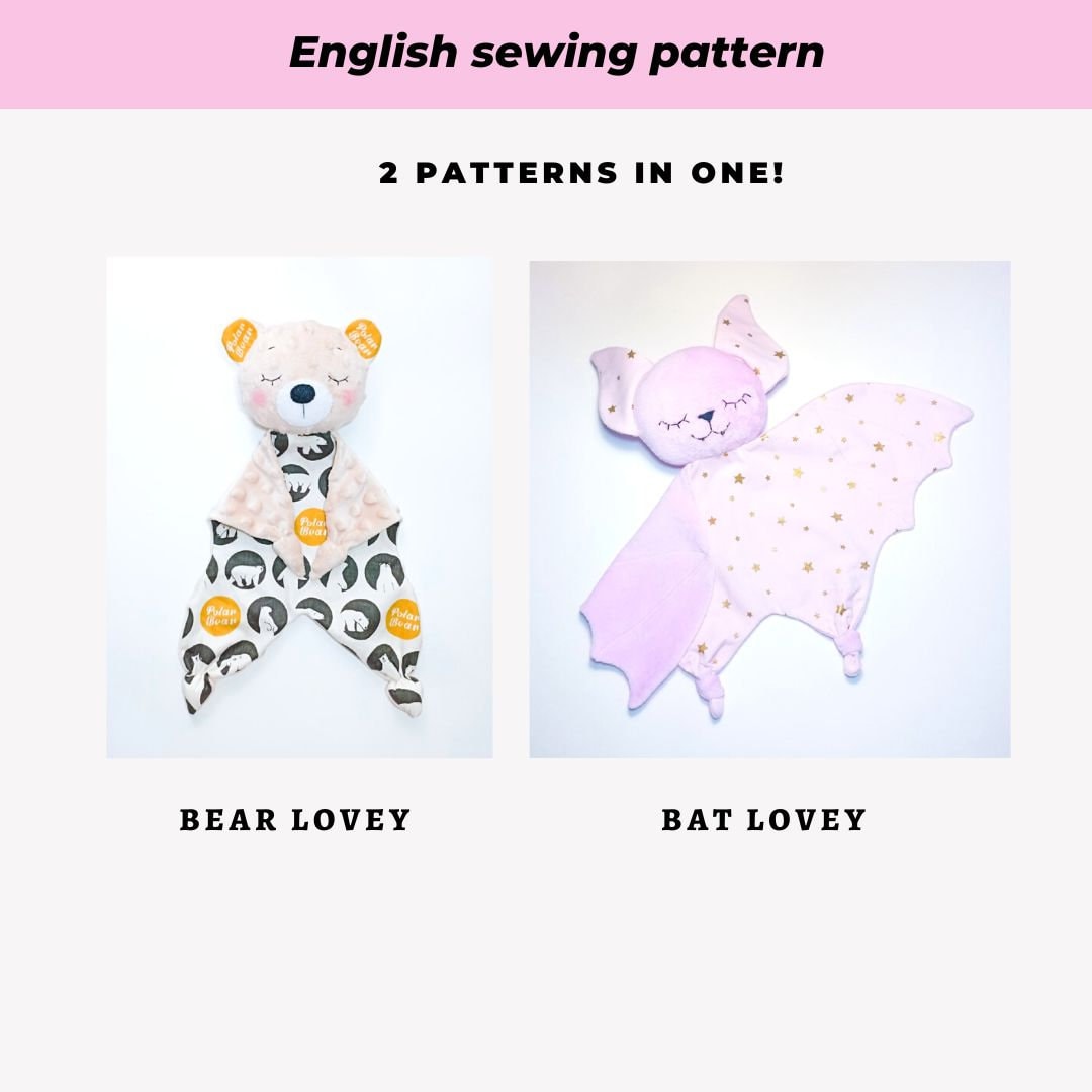 2 In 1 Pdf Sewing Pattern Bear And Bat Security Blanket Baby Etsy